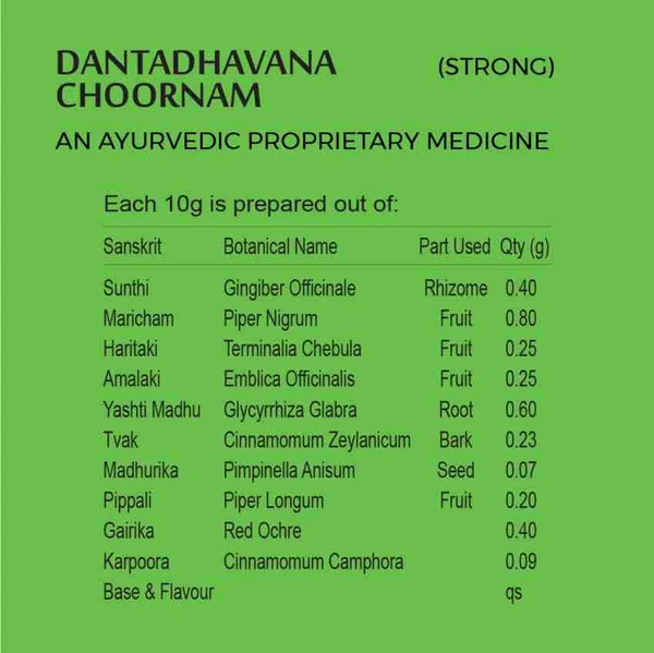 This Ayurvedic Medicine prevents and cures common dental problems, keeps gum healthy, teeth white and breath fresh. Available in two variants - Regular and Strong.
